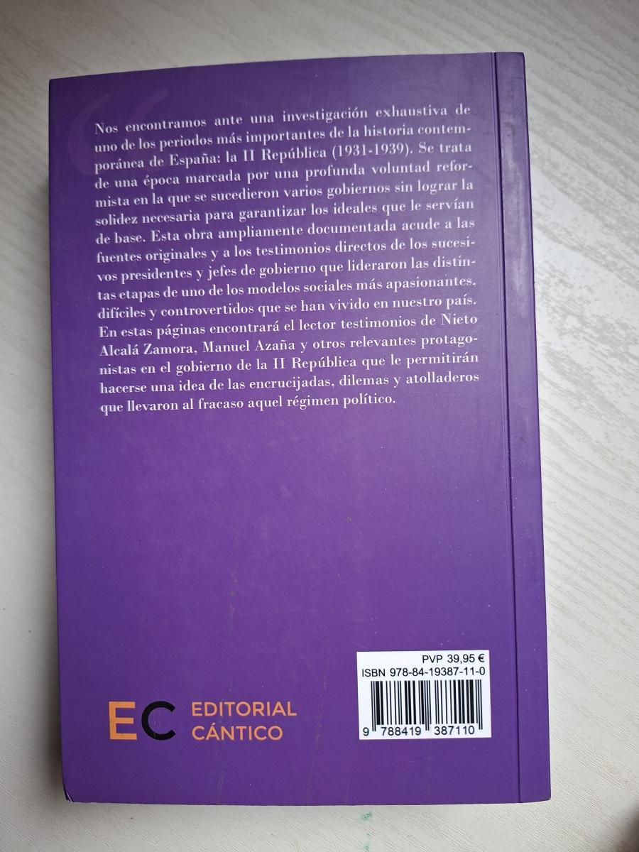 Nos encontramos ante una investigación exhaustiva de uno de los periodos más importantes de la historia contemporánea de España: la II República (1931-1939). Se trata de una época marcada por una profunda voluntad reformista en la que se sucedieron varios gobiernos sin lograr la solidez necesaria para garantizar los ideales que le servían de base. Esta obra, ampliamente documentada, acude a las fuentes originales y a los testimonios directos de los sucesivos presidentes y jefes de gobierno que lideraron las distintas etapas de uno de los modelos sociales más apasionantes, difíciles y controvertidos que se han vivido en nuestro país.